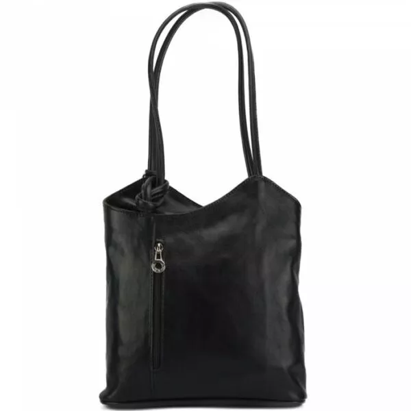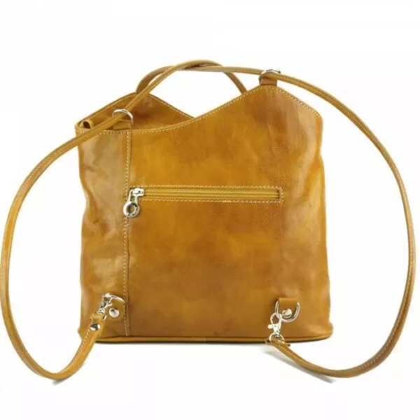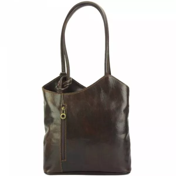 Borsa a spalla in vera cuoio tamponato, trasformabile in un pratico zaino velocemente.